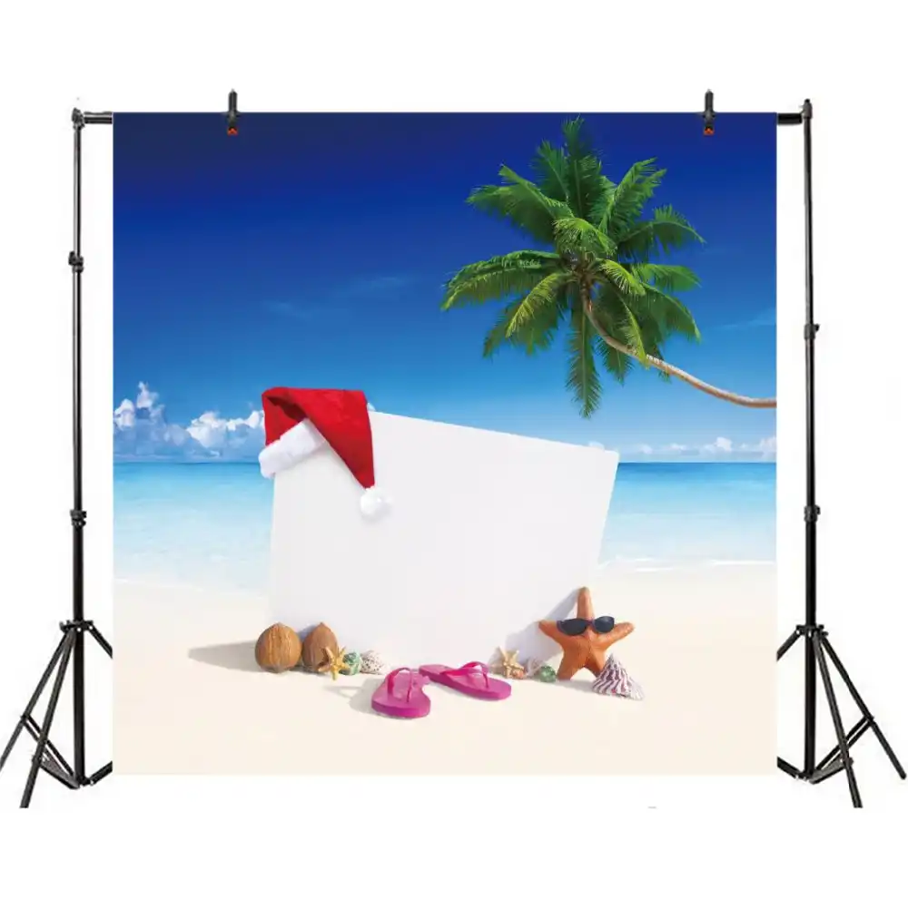 Laeacco Summer Seaside Palm Tree Starfish Baby Christmas Hat Photo Backgrounds Customized Photographic Backdrop For Photo Studio