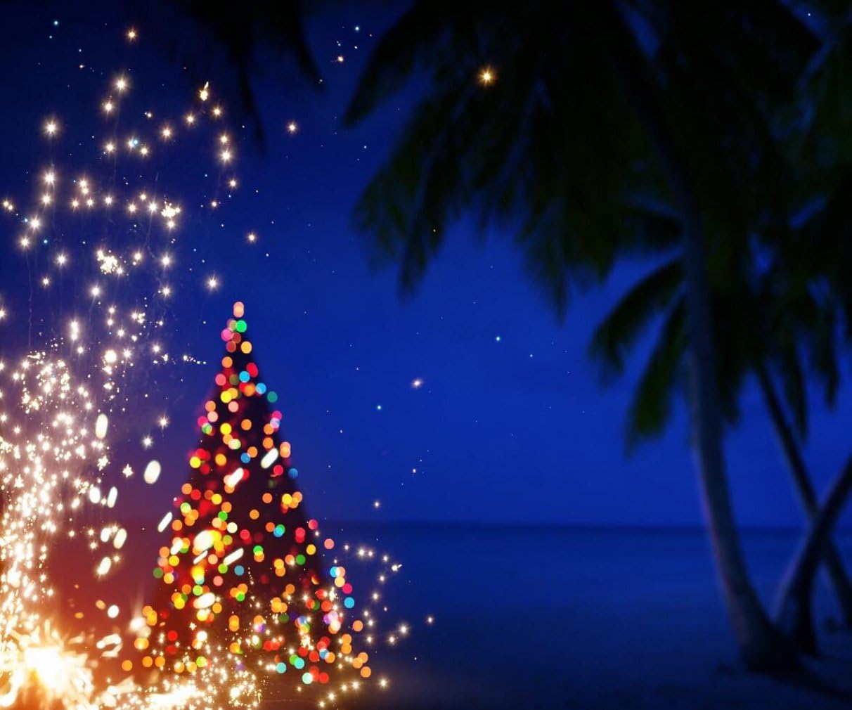 Christmas Palm Tree On The Beach Wallpaper Holiday