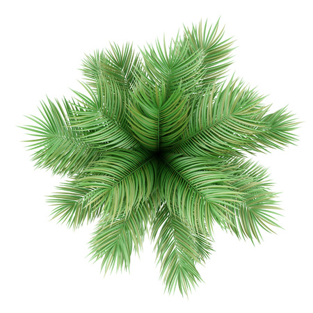 Top View Of Potted Palm Tree Isolated On White Background