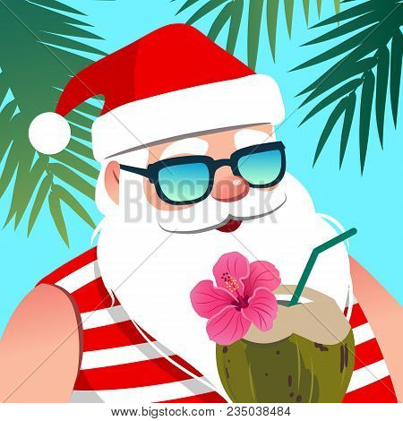 Father Christmas Wearing A Hawaiian Shirt Holding A Cocktail