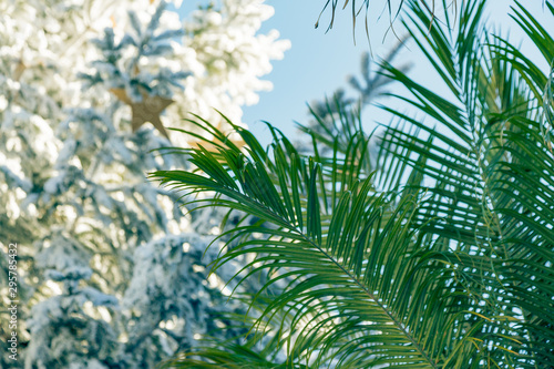 Palm Tree Leaves With Christmas Tree In The Background