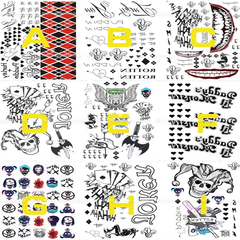 Harley Quinn Temporary Tattoos Cosplay Tattoos Suicide Squad Temporary Tattoos Halloween Costume Joker Tattoo