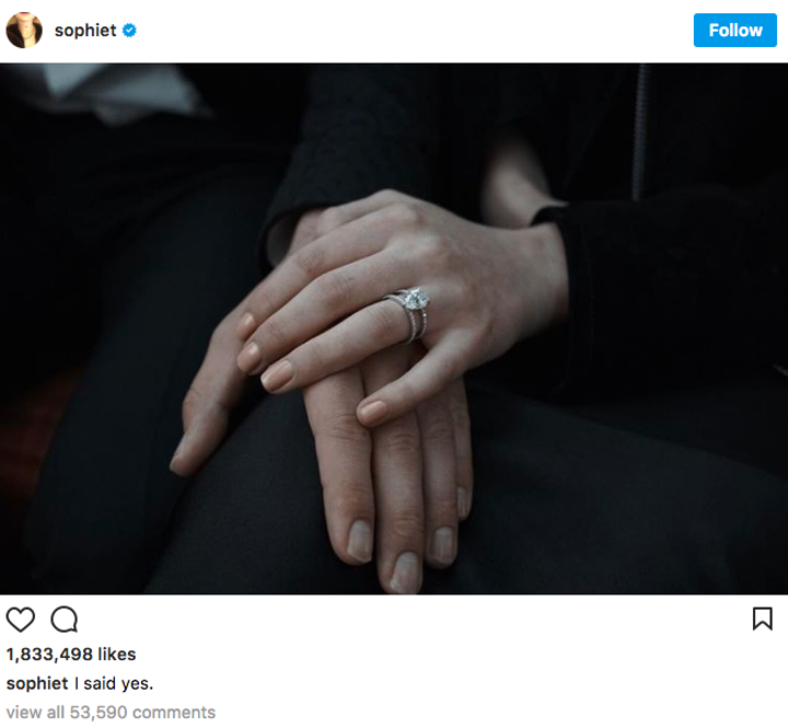 Sophie Turner Makes Her Engagement To Joe Jonas Instagram